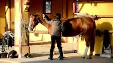 Tip: Prioritize the correct bend. The shoulders will be toward the wall, you are on the isle side, in front of the nose facing the hind quarters. Ask for hollowness on your side.